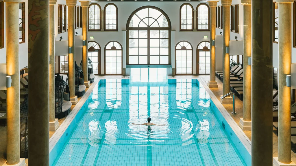 Vielleicht liegen Sie auf einer Liege im ersten Stock – im Bademantel, das Haar noch feucht vom Schwimmen, die Haut warm vom Dampf, der Blick geht hinaus auf die Landschaft – und denken: Warum nehme ich mir das nicht öfter?