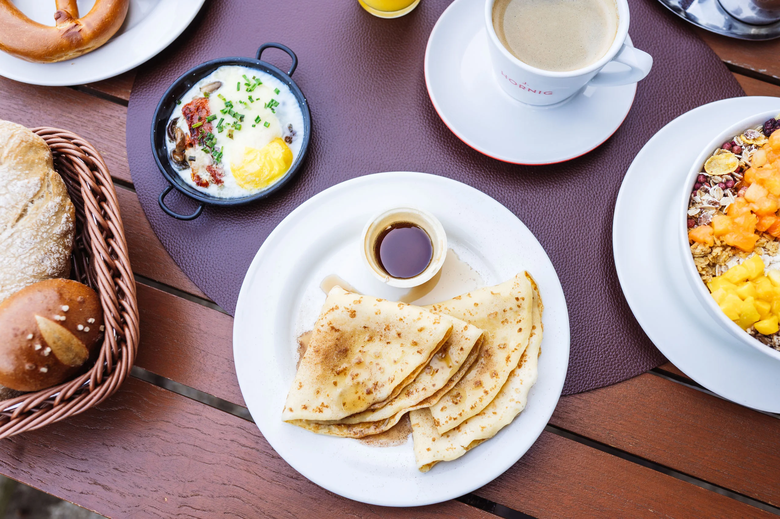 Von 7.00 bis 11.00 Uhr bedienen Sie sich nach Lust und Laune am legendären Schlosshotel Frühstücksbuffet. Auf dem Genussprogramm stehen regionale Delikatessen, internationale Klassiker, handverlesene Zutaten. Sie schlendern gemütlich von Kochstation zu Kochstation und entdecken dabei knusprige Müslis, frische Eierspeise oder warme Porridges. Wie klingen fluffige Pancakes, frische Croissants oder Käse- und Wurstspezialitäten? Das umfassende Angebot sorgt für Abwechslung auf dem Teller: So sieht ein genussvoller Morgen aus.